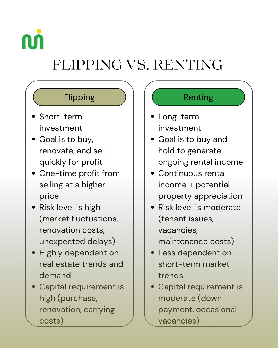 Which real estate strategy suits you between flipping properties for quick profits and renting them out for long-term income? #realestateinvestments #flipping #renting
